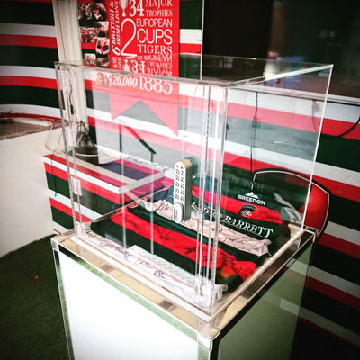The safe itself measures 50x50x50cm so large enough to accommodate most sizes of prize. It's supplied complete with a smart chrome framed plinth to sit on with large white panels. Alternatively there's the option to have bespoke panels made up to your own custom branding requirements.