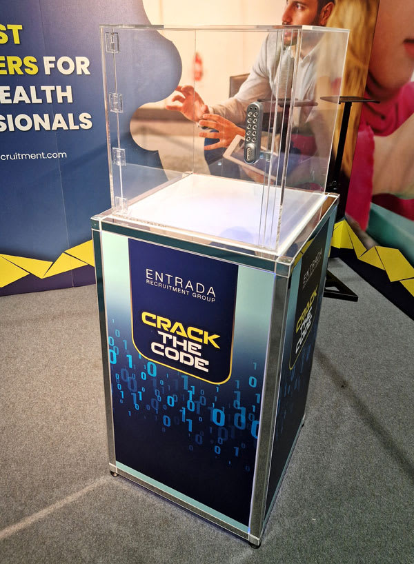 Safe Cracker is a simple game that will draw inquisitive visitors to your exhibition or trade stand to try and guess the code and open the safe door to win the prize inside.