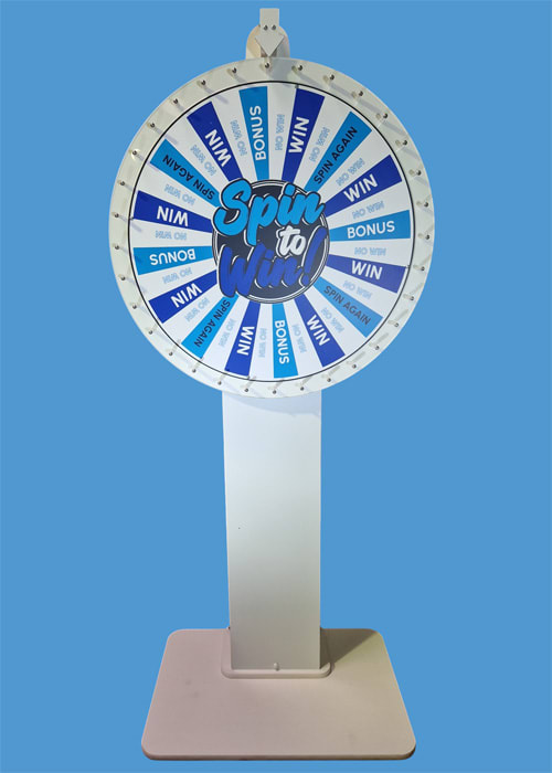 Standing at approx 1.9m tall and 0.8m wide the Wheel of Fortune game is a very visual attraction that always draws an inquisitive crowd ensuring that your stand is the centre of attraction at any expo.