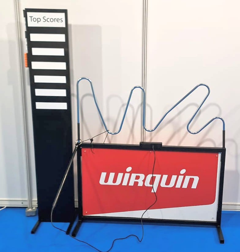 We offer both counter top or floor standing versions of our Giant Buzz Wire games for hire for exhibition stand game use.